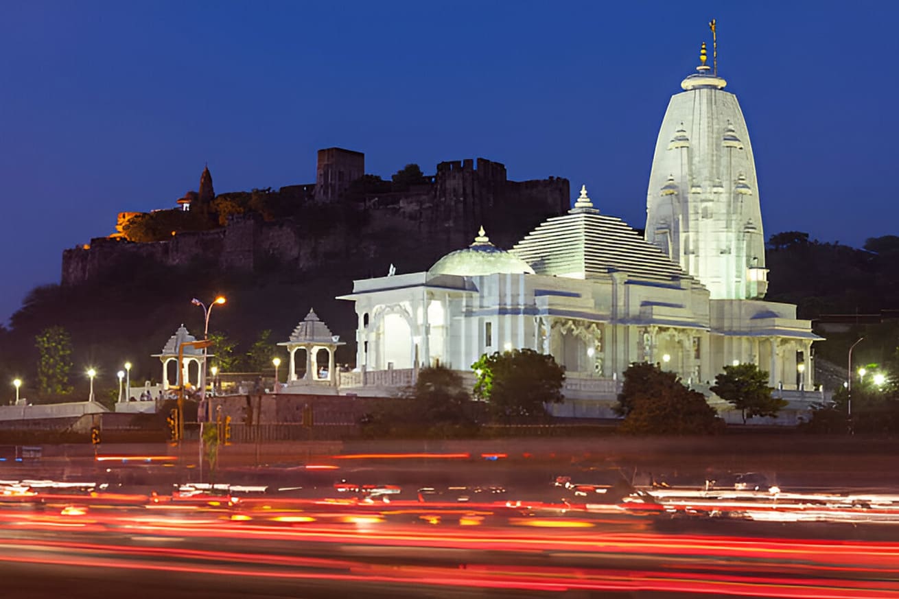 The Lakshmi-Narayan Temple, or the Birla Temple, as it is more popularly known as, is located at the base of Moti Dungari. Built on an elevated platform, this comparatively modern temple is built entirely of white marble and dominates the skyline of south Jaipur.
