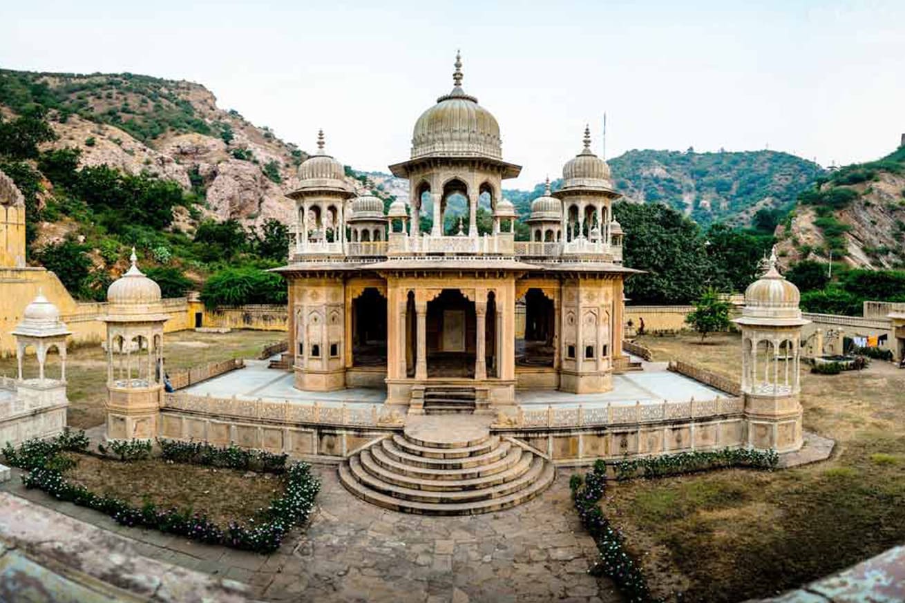 Just off the Jaipur-Amber road is Gaitore, where the former Maharajas of Jaipur are entombed. The chhatris (cenotaphs), made of white marble display the distinctive Rajput style of architecture. The open pavilions with ornate domes are supported by delicately sculpted pillars.